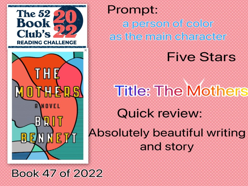 Categories books and reading The Mothers Post author By pleasantnites Post date March 13, 2022 No Comments on The Mothers
