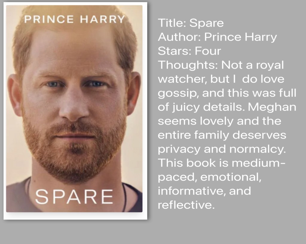 Categories books and reading Spare Post author By pleasantnites Post date February 8, 2023 No Comments on Spare Share this: Click to share on X (Opens in new window) X Click to share on Facebook (Opens in new window) Facebook Like Loading... Related By pleasantnites On Twitter @pleasant_nights View Archive → ← Little Eve → A Great Reckoning Leave a comment Cancel reply Δ