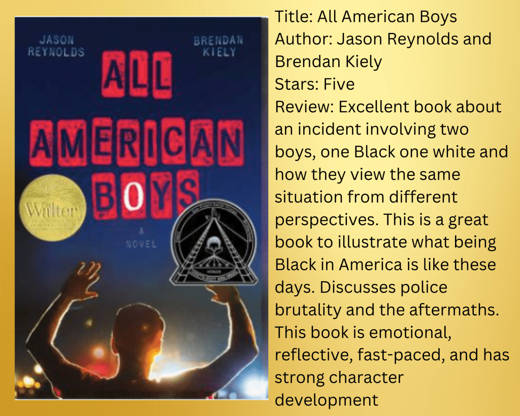 Categories books and reading All American Boys Post author By pleasantnites Post date September 4, 2023 No Comments on All American Boys