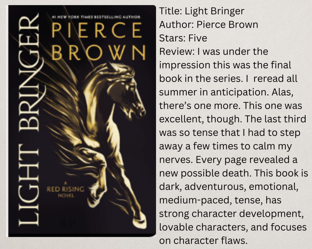 Categories books and reading Light Bringer Post author By pleasantnites Post date September 8, 2023 No Comments on Light Bringer
