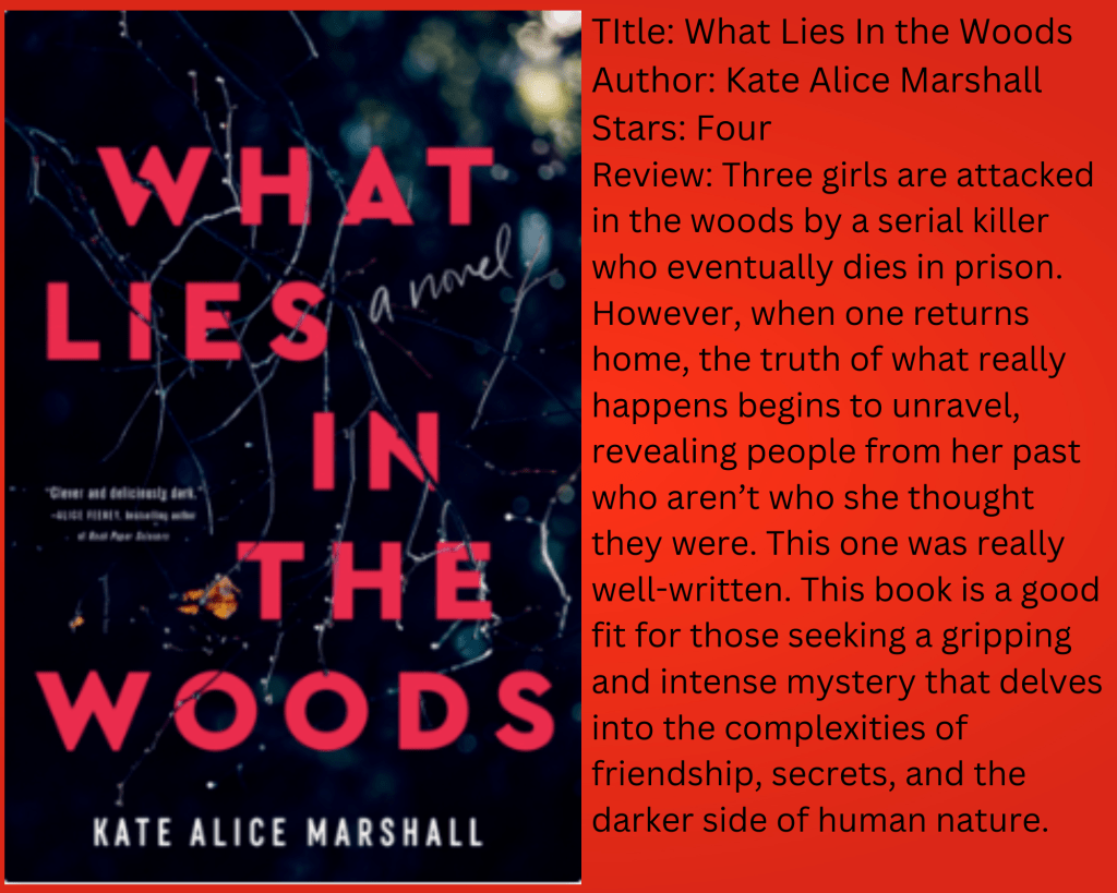 Categories books and reading What Lies in the Woods Post author By pleasantnites Post date January 17, 2024 No Comments on What Lies in the Woods Share this: Click to share on X (Opens in new window) X Click to share on Facebook (Opens in new window) Facebook Like Loading... Related By pleasantnites On Twitter @pleasant_nights View Archive → ← The Lies I Tell → This is Where We Talk Things Out Leave a comment Cancel reply Δ