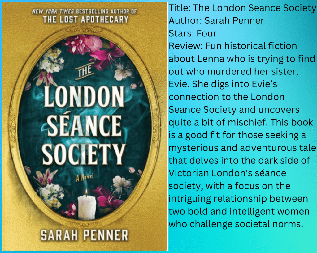 Categories books and reading The London Seance Society Post author By pleasantnites Post date February 8, 2024 No Comments on The London Seance Society Share this: Click to share on X (Opens in new window) X Click to share on Facebook (Opens in new window) Facebook Like Loading... Related By pleasantnites On Twitter @pleasant_nights View Archive → ← Good Neighbors → Funeral Songs for Dying Girls Leave a comment Cancel reply Δ