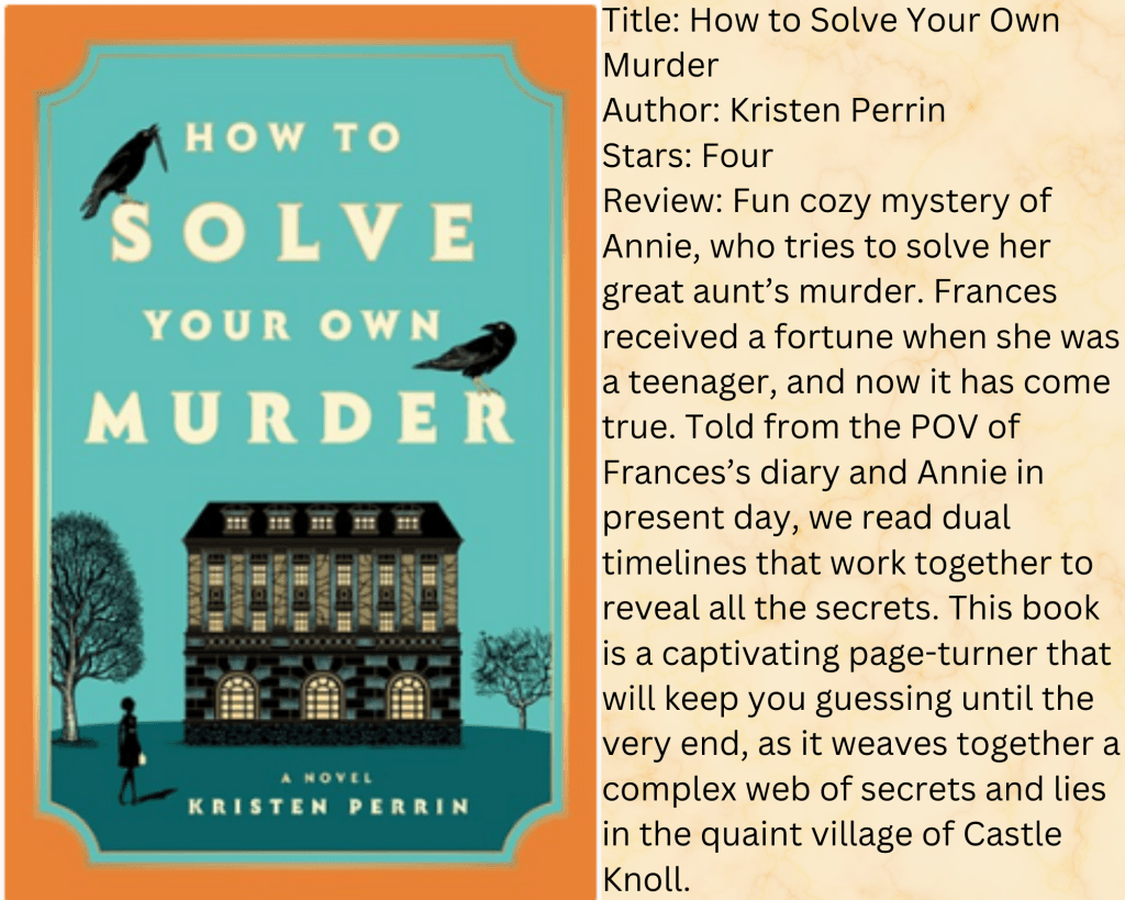 Alice and Lottie are roommates who don’t like each other at all. However, Alice participates in a ritual that splits her soul. Lottie tries to discover the secret of the murders when a classmate also dies. I did finish this book, but it was a chore. I didn’t like either main character, and there was a random side character who also splits her soul, but she had no purpose in the book.