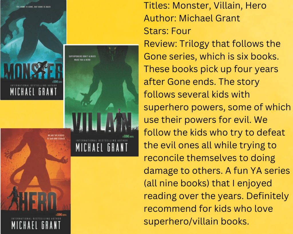 Categories books and reading Monster, Villain, Hero Post author By pleasantnites Post date August 31, 2024 No Comments on Monster, Villain, Hero Share this: Click to share on X (Opens in new window) X Click to share on Facebook (Opens in new window) Facebook Like Loading... Related By pleasantnites On Twitter @pleasant_nights View Archive → ← The Society of Soulless Girls → Slow Dance Leave a comment Cancel reply Δ