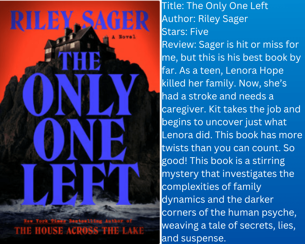 Categories books and reading The Only One Left Post author By pleasantnites Post date August 2, 2024 No Comments on The Only One Left