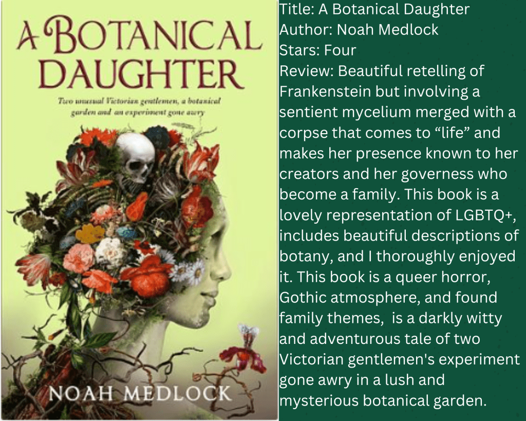 Categories books and reading A Botanical Daughter Post author By pleasantnites Post date September 17, 2024 No Comments on A Botanical Daughter Share this: Click to share on X (Opens in new window) X Click to share on Facebook (Opens in new window) Facebook Like Loading... Related By pleasantnites On Twitter @pleasant_nights View Archive → ← John Dies at the End → Starling House Leave a comment Cancel reply Δ