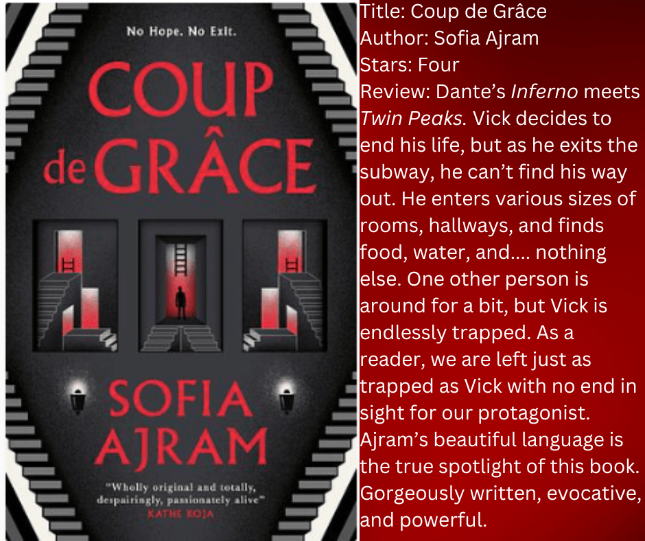 Categories books and reading Coup de Grâce Post author By pleasantnites Post date March 13, 2025 No Comments on Coup de Grâce Share this: Click to share on X (Opens in new window) X Click to share on Facebook (Opens in new window) Facebook Like Loading... Related By pleasantnites On Twitter @pleasant_nights View Archive → ← Framed → Rest Stop Leave a comment Cancel reply Δ