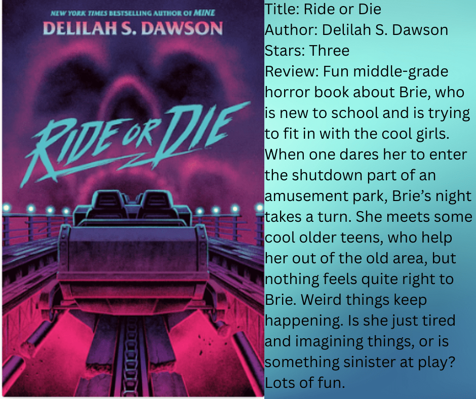 Categories books and reading Ride or Die Post author By pleasantnites Post date March 13, 2026 No Comments on Ride or Die Share this: Share on X (Opens in new window) X Share on Facebook (Opens in new window) Facebook Like Loading... Related By pleasantnites On Twitter @pleasant_nights View Archive → ← The Autumn Springs Retirement Home Massacre Leave a comment Cancel reply Δ