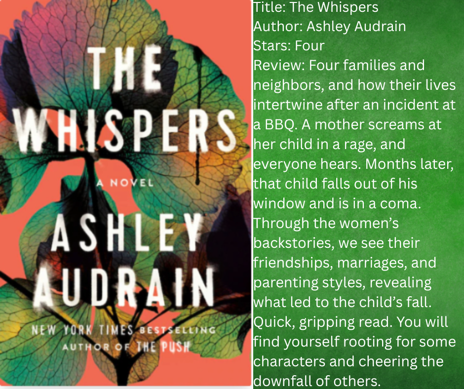 BA Paris has been on my radar for a while, but this is the first of hers I’ve read. I thought this book was really great and look forward to reading more of hers. She pulls off the present/past timeline shift between chapters, which is tough to do.